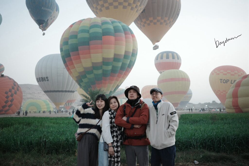 等待的同時開始有熱氣球起飛了,爸媽算是非常興奮,多年前去土耳其卡帕多奇亞時,我們等了三天的熱氣球,每天都因為天氣因素被取消,這次終於飛成功了,大家開心的不得了😍