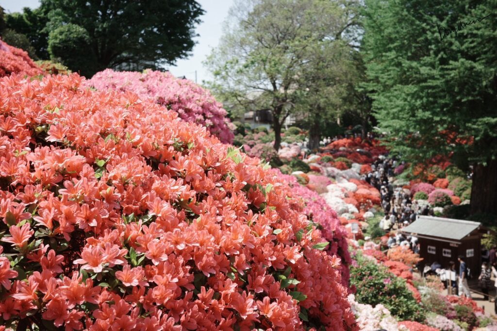 根津神社的杜鵑花據說在江戶時代就已經開始種植,由於杜鵑花的高度觀賞價值加上根津神社旁邊剛好就有個小山丘可以種植,才讓這裡成為觀賞杜鵑花的絕佳景點,尤其山丘的坡度讓杜鵑花可以有高低層次,光用眼睛看都覺得忙不過來💗